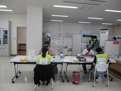 接種は3回実施の計画で、吉備国際大学が全面協力され、同大学と順正高等看護福祉専門学校で医師や看護師免許を持つ教員が打ち手を努め、8月8日(日)に続いての実施となりました。予約時の混雑緩和を図ると共に市民(事業所等)のワクチン接種を加速するため、同大が地域貢献の一環として医療人材と会場を提供されました。接種希望者は高梁商工会議所・備北商工会を通じて市内事業所から募集、第2回目の実施となった今回は企業の役員、従業員ら約270人がファイザー製のワクチンを接種しました。企業からは外国人技能実習生の接種希望もあることから、会場では学生が案内並びに通訳も担当しました。