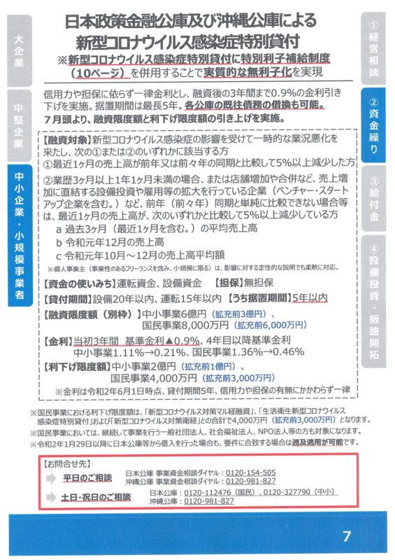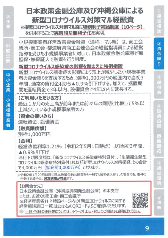 新型コロナウイルス感対策マルケイ融資等(日本政策金融公庫)のご案内