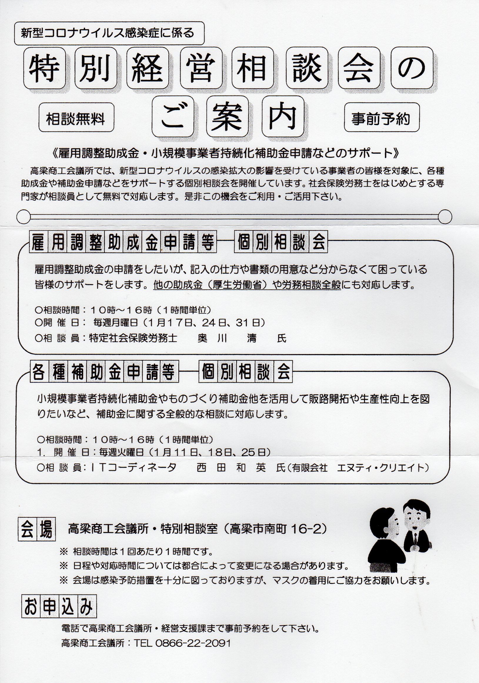 新型コロナ特別相談会(無料相談・1月)のご案内(高梁商工会議所)