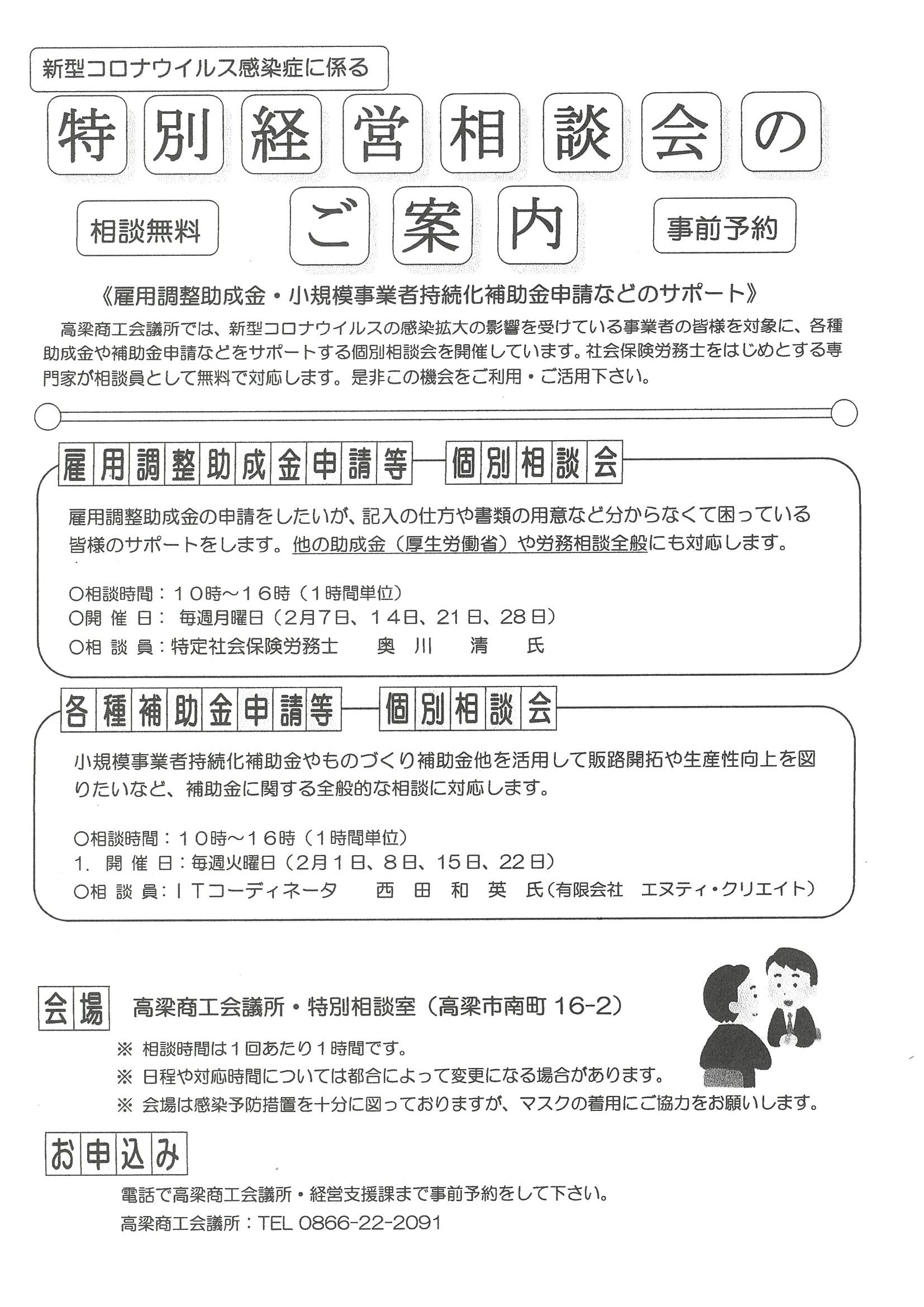 > 新型コロナ特別相談会(無料相談・2月)のご案内(高梁商工会議所)