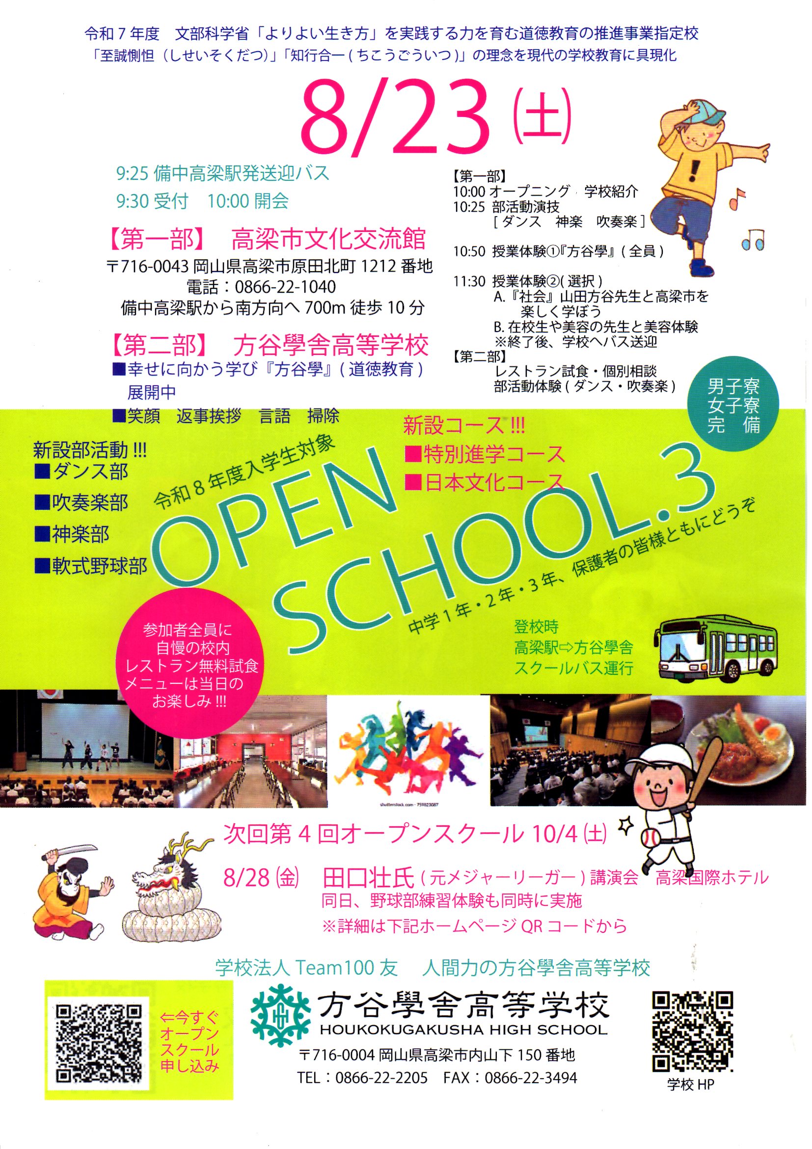 方谷學舎高等学校「オープンスクール」「講演会」のご案内