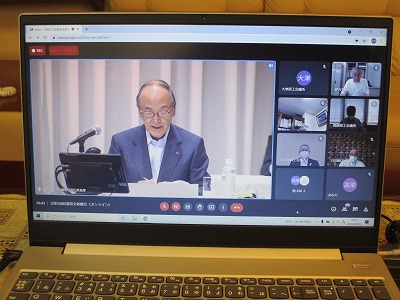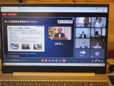 日本商工会議所第133回会員総会が、9月16日(木)9時30分から帝国ホテルで、完全オンライン形式で開催されました。会員総会には全国515商工会議所がオンラインで参加、高梁商工会議所からもオンライン参加いたしました。会員総会では三村会頭の挨拶の後、来賓挨拶として菅内閣総理大臣、梶山経済産業大臣のビデオメッセージ、そして各政党代表の挨拶などがありました。続いて表彰が行われ、優良商工会議所並びに永年勤続役員議員・職員表彰が行われました。続いて議事に入り、①2020年度事業報告(案)について、②2020年度収支決算(案)について説明があり、すべて承認されました。