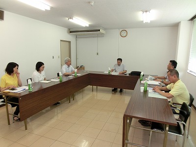 日本商工会議所では西日本豪雨災害の被災地の商工会議所を訪問(現地ヒアリング)されており、高梁商工会議所には、7月25日(水)に日本商工会議所地域振興部五十嵐部長が来所されたことに合わせ、午後1時30分から高梁商工会館・第2会議室で、日本商工会議所との懇談会を開催いたしました。当日は同行された岡山商工会議所小川総務企画部長を合わせ6人が出席、五十嵐部長、高梁商工会議所遠藤専務理事の挨拶の後、当商工会議所から①被災状況の説明、②高梁商工会議所の対応について説明した後、五十嵐部長から国の支援策等についてお話しいただき、当商工会議所職員と意見交換を行いました。