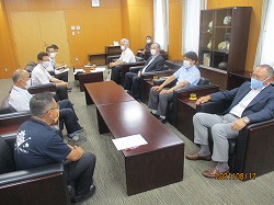 高梁商工会議所では近藤高梁市長との懇談会を、8月17日(火)午後4時から高梁市役所で開催いたしました。当日は高梁市より近藤市長、藤澤副市長、村原産業経済部長、大小田産業振興課長ら幹部が出席、当商工会議所からは藤岡会頭、島副会頭、柴倉副会頭、遠藤専務理事が出席し人口減少対策、雇用対策、新型コロナワクチン集団接種(企業枠)実施等のコロナ対策等について情報交換を行いました。