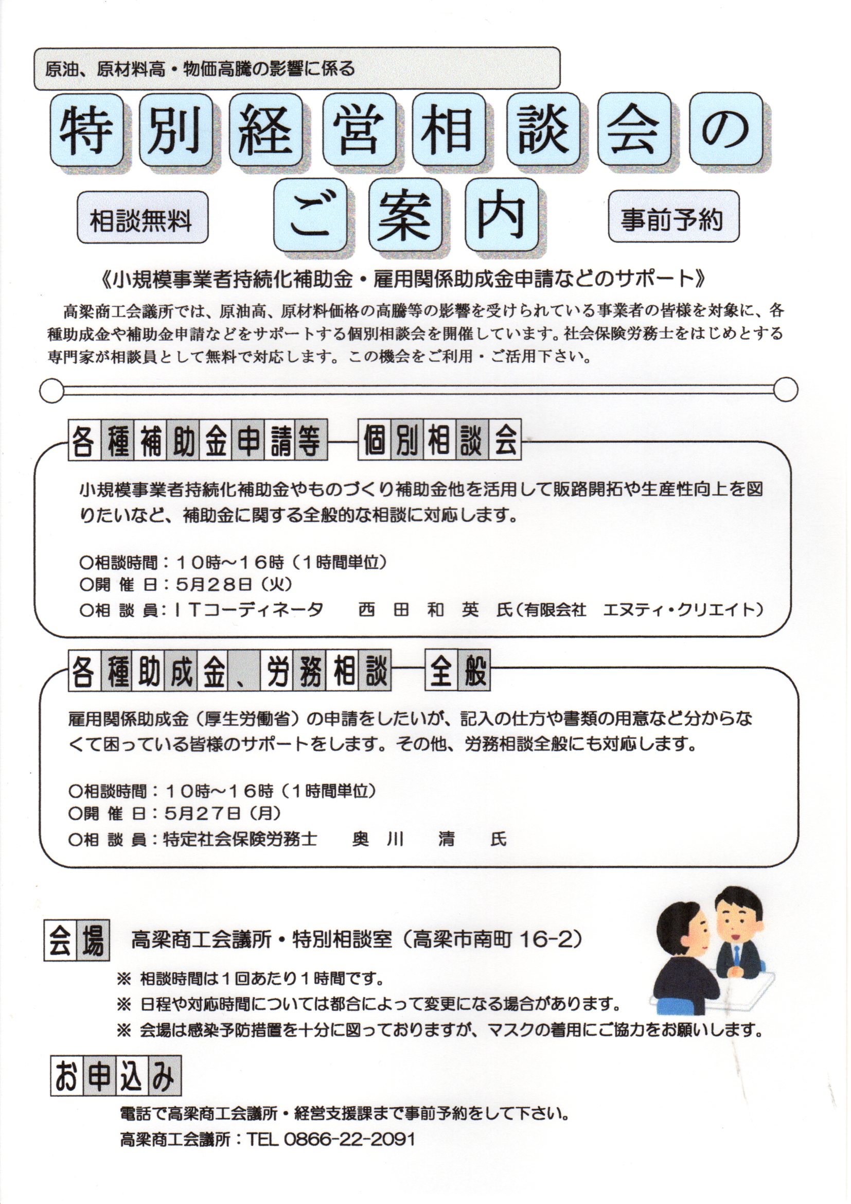 特別経営相談会「無料相談5月」のご案内(高梁商工会議所)