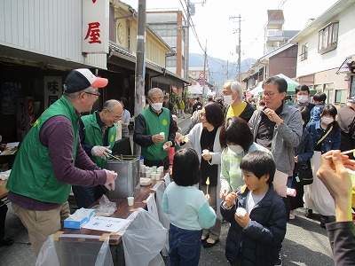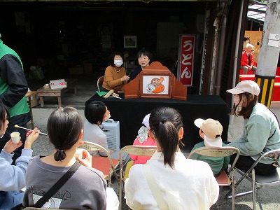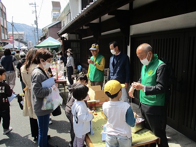 備中たかはし城下町・町家通りの雛まつりが4月6日(土)・7日(日)の2日間、高梁市本町地区一帯で開催されました。両日行われた町並みバザールには多くの団体も参加され、高梁ライオンズクラブ(岡田誠治会長)では4月6日(土)、7日(日)に参加し、コマや竹とんぼ、メンコなどの昔遊びと、おはなし玉手箱の皆さんによる子供達への紙芝居を行いました。