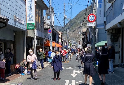 備中たかはし城下町・町家通りの雛まつりが4月3日(日)、高梁市本町地区一帯で開催されました。当日は晴天に恵まれ、高梁市本町地区の・町家通り各戸でひな人形が展示され多くの方が訪れました。また、紺屋町美観地区の桜並木も満開となりました。今回は、新型コロナの影響を考慮し、日曜日1日の開催とするなど縮小しての開催となりました。