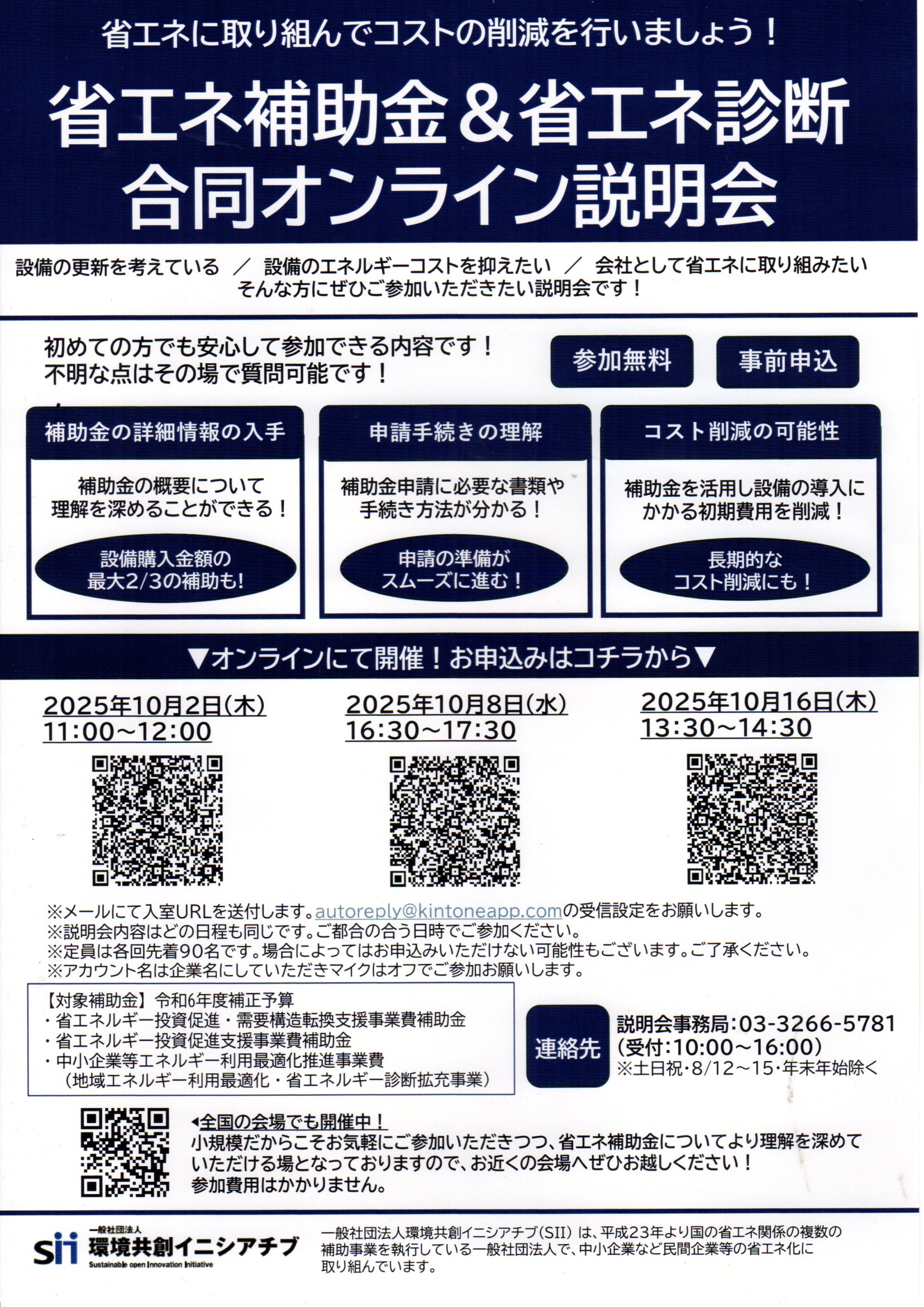 省エネ補助金&省エネ診断合同オンライン説明会のご案内