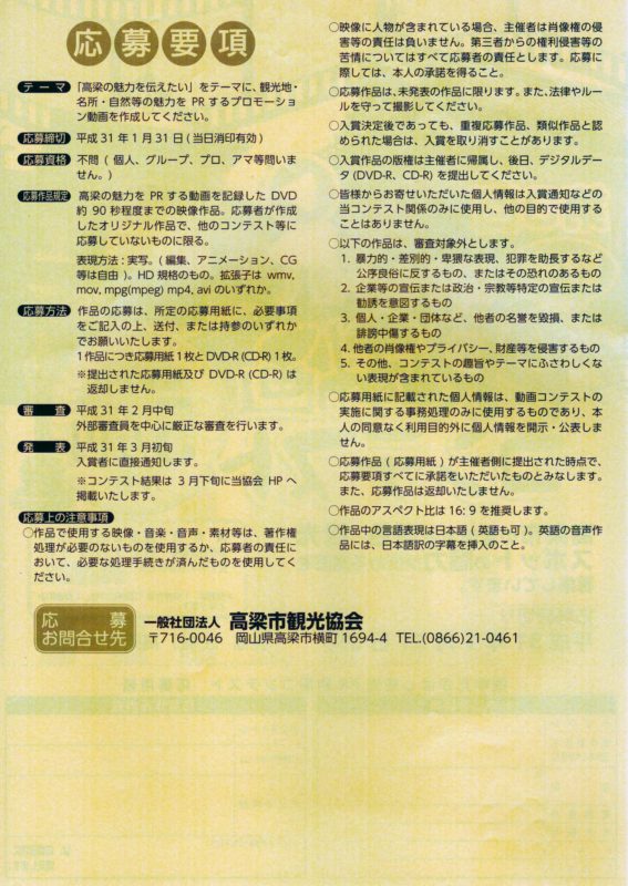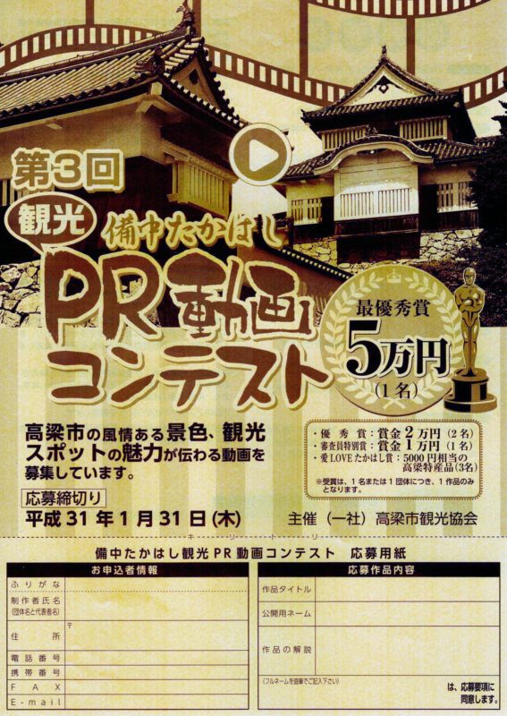 > 第3回備中高梁観光PR動画コンテストのご案内