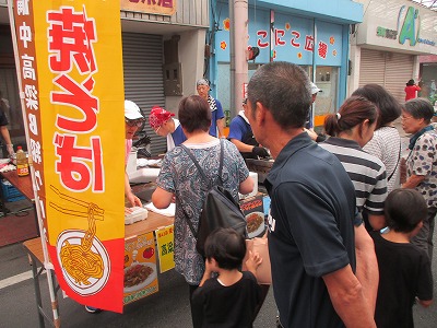 第43回「愛らぶ高梁ふれあい広場」、が、9月8日(日)に、高梁市栄町商店街を会場に開催されました。ふれあい広場は、毎年、高梁市青年経済協議会(田中秀治会長)主催し開催しているもので、仮装大会、ビンゴゲーム、備中太鼓、大道芸など様々なイベントが開催されました。グルメコーナーも充実しており、多くの団体が出店される中、備中高梁食援隊も出店し、ご当地グルメ「インディアントマト焼そば」をPR・販売いたしました。今回の備中高梁食援隊は、高梁商工会議所青年部メンバーを中心となり、青年部中村雅則会長をはじめ、多くの青年部メンバーが参加しPRいたしました。