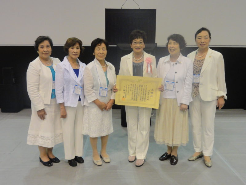 翌6日の全国大会では、津野邊金代直前会長が、当女性会での功績が認められ、全国商工会議所女性会連合会より表彰を受けました。その後、作家の林真理子氏の「私の仕事より」と題した記念講演会がありました。