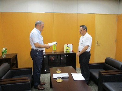 高梁商工会議所では、西日本豪雨災害に対する市民の皆様からの義捐金を7月中旬から吉備ケーブルテレビを通じて募集し、8月20日現在で113件、795,650円の義捐金をいただきました。そして8月23日(水)午前10時30分から高梁市役所で行われた義捐金贈呈式で、高梁商工会議所藤岡会頭から高梁市近藤市長へ義捐金を寄託いたしました。