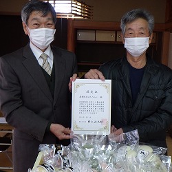 高梁市楢井地区の農業者らで組織する農事組合法人ならい(川上功代表理事)が、地域産のもち米とたかきびなどを組み合わせた「かきもち」の商品開発で、6次産業化法に基づく農林水産省の総合事業計画の認定を受けました。現在、城餅シリーズ(お餅)などを中心に製造販売していますが、高梁市の特産品として親しまれてきた「かきもち」に着目、これまで養ってきた餅の加工技術を活かし商品化に向けた準備を進め、今後製造施設を設け新商品として販売する計画です。2月9日(火)に市松山自然休暇管理センターで認定式が行われ、中国四国農政局事業支援部田村部長より川上代表理事に認定証が手渡されました。