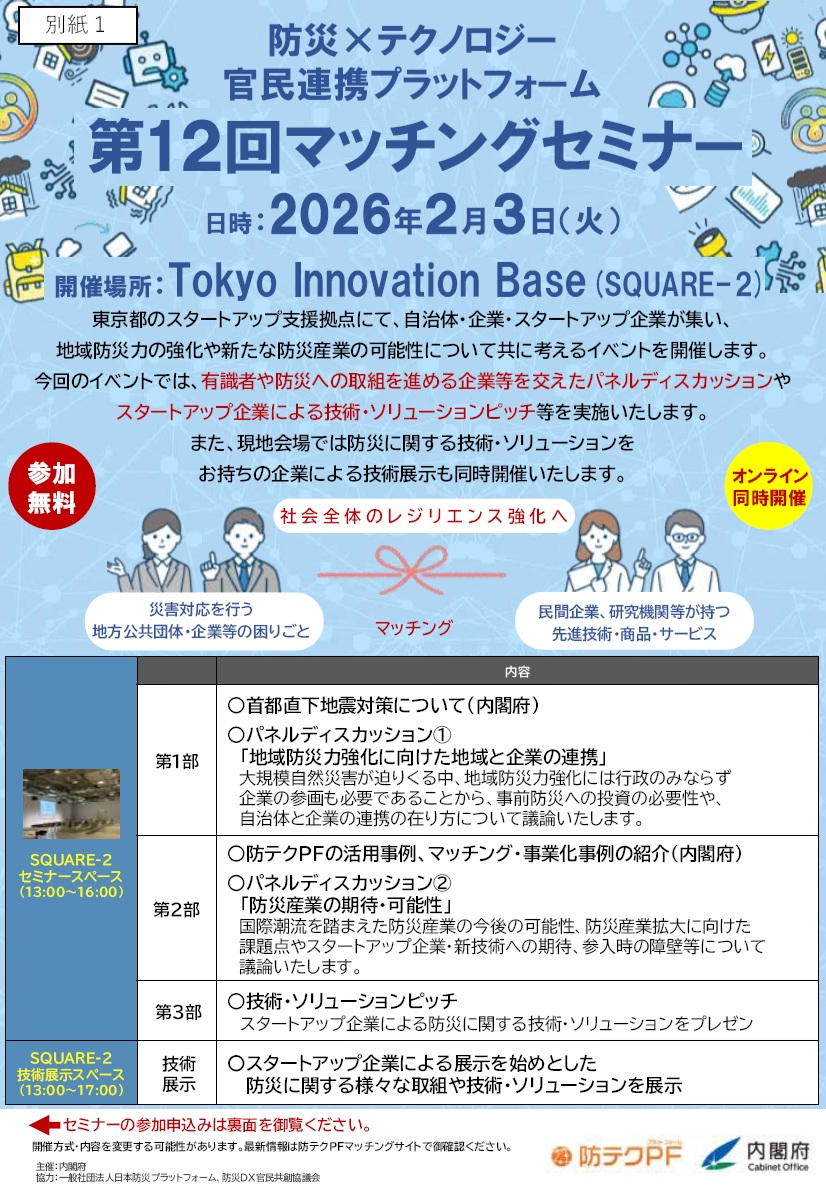防災×テクノロジー官民連携プラットフォーム第12回マッチングセミナーのご案内