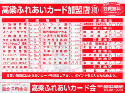 高梁ふれあいカード会年間イベントのご案内