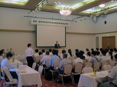 高梁・新見地区「高等学校対象産業事情説明会」を、7月26日(月)午後1時から、高梁国際ホテルで開催いたしました。産業事情説明会は、管内の産業事情及び求人状況の説明を行い新規高等学校卒業者の高梁地域への就職を促進することを目的に、高梁・新見地区雇用開発協会、高梁・新見商工会議所、高梁公共職業安定所、同新見出張所主催により、毎年(高梁市・新見市隔年)開催しています。説明会では、高等学校教諭、生徒、企業関係者(31社)、主催者含め約110人が出席、高梁地区雇用開発協会柴倉会長の挨拶の後、高梁公共職業安定所赤枝所長が雇用情勢について説明されました。そして管内参加企業の担当者が、来春卒業予定の高校生に企業概況説明した後、各社のブースで補足説明が行われました。