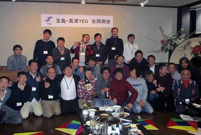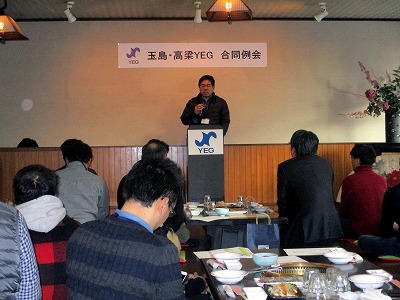 高梁商工会議所青年部(上杉明生会長)では、玉島商工会議所青年部との合同例会懇親会を、1月27日(日)、高梁市落合町阿部の「焼肉モランボン」で開催いたしました。高梁YEG上杉会長、玉島YEG前田会長の挨拶の後、本年度の活動報告や次年度会長の紹介があり、高梁YE・玉島YEGの会員同士、交流を深めました。高梁・玉島商工会議所青年部合同例会は、毎年持ち回りで開催しています。