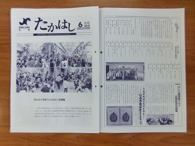 高梁商工会議所会報6月号が発行されました。表紙は栄町商店街で開催された「わくわく子どもフェスタ21」。2p以降に、高梁商工会議所6月定例常議員会開催報告、高梁商工会議所女性会令和元年度総会開催報告と新役員名簿、びしん経営者クラブ定期総会開催報告、吉備国際大学「いぶき・めぶき13号」を発刊、高梁川流域倉敷三斎市「高梁デー」案内、トマトアグリフードフェア案内、吉備国際大学シャルム岡山高梁VS岡山湯郷ベル(神原スポーツ公園)案内、新会員募集案内、会員事業所訪問は「PIZZERIA- 澪 -」、ゴールデンウイークの高梁市の観光動向、経営セミナー「知って得するキャッシュレス化!0から始める超入門講座」(消費税軽減税率対策窓口相談事業)案内、新入会員紹介(名簿)などです。青年部だよりは6月講師例会&ITセミナー「インスタグラムで集客しLINEでリピートグーグルマップ活用して売上をぐっと伸ばす」開催報告。その他マルケイ資金案内、働き方改革関する個別相談日案内、特許商標実用新案等相談日案内、事務局日誌などです。吉備国際大学社会学部高橋ゼミと連携した取材「産学連携シリーズ」は吉備国際大学外国語学部高木秀明准教授③です。またご覧下さい。