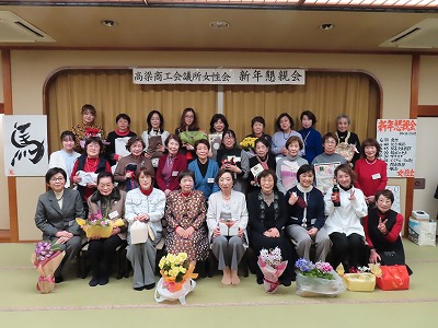 高梁商工会議所女性会(福瀧登喜恵会長)では、1月20日(火)午後6時より「花のれん」に於いて「新年懇親会」を開催いたしました。懇親会では福瀧会長の挨拶の後、美味しい料理をいただきました。また、会員によるカラオケやビンゴゲーム、イントロあてゲームなどを行い、楽しい時間を過ごすと共に会員同士の懇親を深めました。