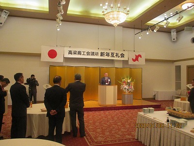 高梁商工会議所主催の「新年互礼会」を、令和2年1月6日(月)午前11時から高梁国際ホテルで開催いたしました。当日は、藤岡孝会頭の挨拶の後、近藤高梁市長、衆議院議員・厚生労働大臣加藤勝信令夫人加藤周子氏、大森岡山県議会議員に祝辞をいただきました。そして高梁市議会小林議長の乾杯音頭で、懇親会がスタートしました。懇親会では参加された皆様同士、新年の挨拶や名刺交換を行われ、和やかに懇談が行われました。また懇親会からご出席いただきました石井正弘参議院議員、小野田紀美参議院議員氏、にご挨拶をいただきました。