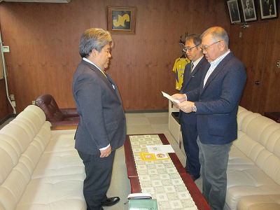 高梁商工会議所と高梁学生応援協力会は合同で、10月31日(水)午前11時30分から高梁商工会議所で吉備国際大学シャルム岡山高梁へ支援金を贈呈いたしました。当日は高梁商工会議所藤岡会頭と高梁学生応援協力会田中会長から吉備国際大学シャルム岡山高梁の赤木ゼネラルマネージャーに目録を手渡しました。