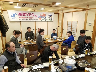 高梁商工会議所青年部(上杉明生会長)では、2月23日(土)、24日(日)に、研修視察旅行IN道後温泉を開催いたしました。青年部卒業旅行を兼ねた研修視察には15人が参加、卒業生を囲み参加者同士親睦を深めました。