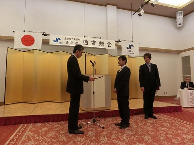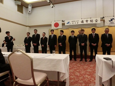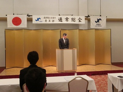 高梁商工会議所青年部(津野辺和彦会長)では、4月27日(木)午後7時から高梁国際ホテルにて平成29年度総会を開催いたしました。当日は来賓、会員約50人が出席、津野辺会長の挨拶の後、高梁商工会議所藤岡会頭、高梁市土田産業観光課長、久徳岡山県議会副議長から祝辞をいただきました。続いて議事に入り、平成28年度事業報告・決算の承認、平成29年度役員(案)並びに組織(案)、事業計画(案)、予算(案)を議決しました。そして新役員を代表して、10月の臨時総会で選任された山本則幸新会長が就任の挨拶を行い、最後に、卒業生に28年度津野辺会長より卒業証書と記念品が贈られました