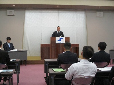 高梁商工会議所青年部(中村雅則会長)では、10月10日(木)午後7時から高梁商工会館第1会議室で理事役員会を開催し、理事会終了後午後8時から臨時総会を開催いたしました。総会では中村会長の挨拶の後、令和2年度会長選出について協議され、金石弘志君(現副会長)が次年度会長に選出されました。