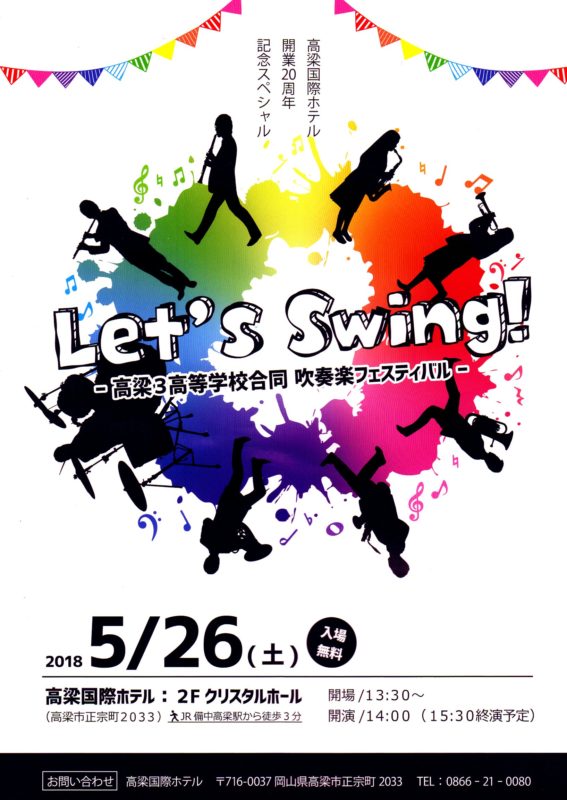 高梁国際ホテル開業20周年記念「高梁3高等学校吹奏楽フェスティバル」のご案内