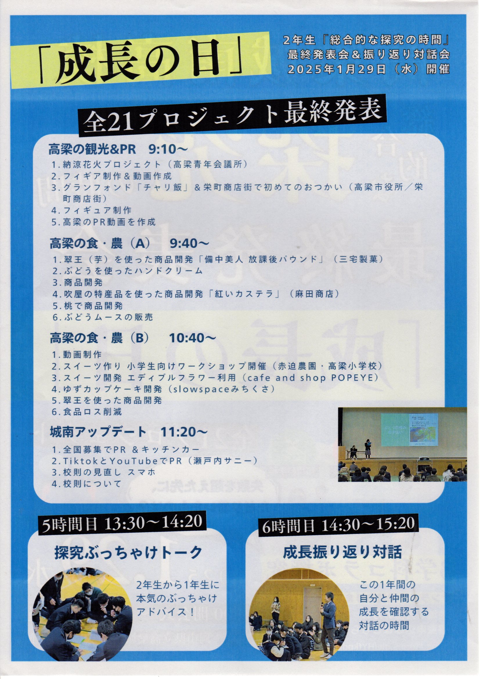 高梁城南高等学校「総合的な探求の時間・最終発表会」のご案内