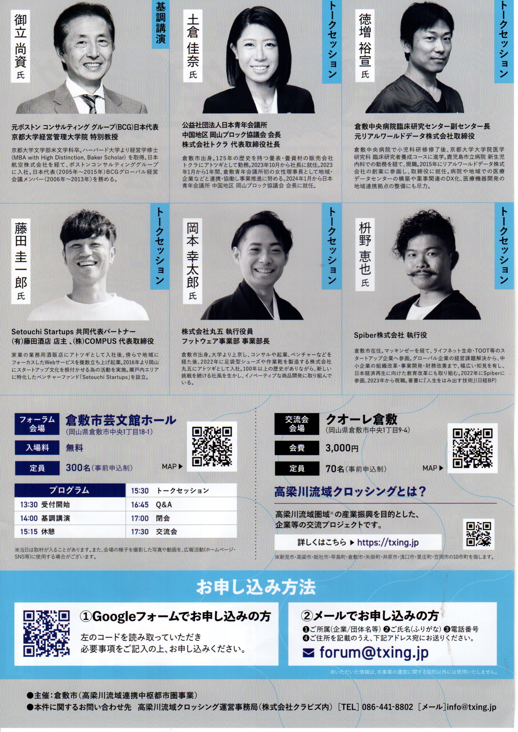 > 高梁川流域クロッシングオープンイノベーションフォーラムのご案内