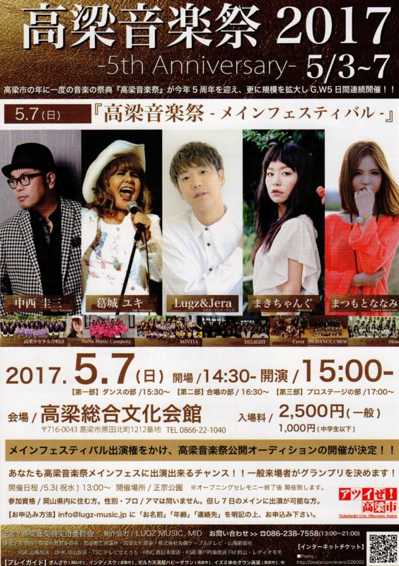 > 高梁音楽祭2017の(5月3日~7日)ご案内