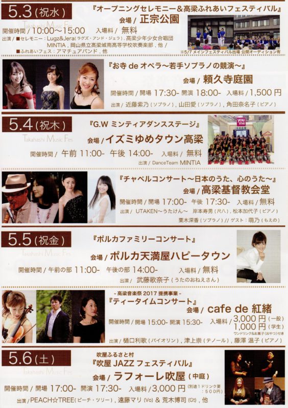 高梁音楽祭2017の(5月3日~7日)ご案内