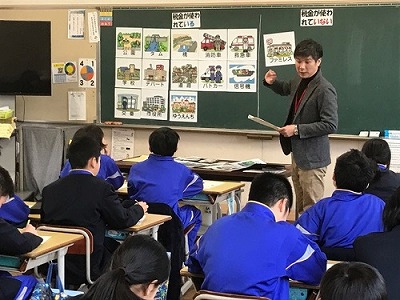 (公社)高梁法人会青年部会では、平成30年1月、管内の小学校2校【落合小学校(1/24)・高梁小学校(1/25)】において、平成29年度・租税教室を開催いたしました。当日は、山本副部会長(落合小2クラス)と中村副部会長(高梁小2クラス)がそれぞれ分担して講師を務め、パネルなどを使いながら児童たちに、税金の種類や税金がどのような流れで人々の生活に役立っているのかをわかりやすく説明いたしました。
