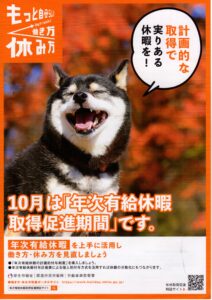 > 10月は「年次有給休暇取得促進月間」です
