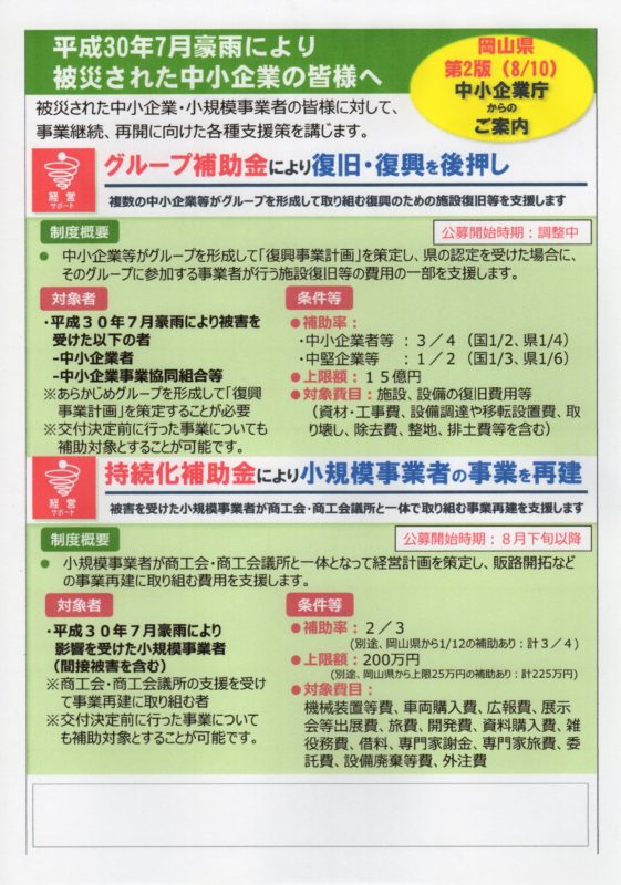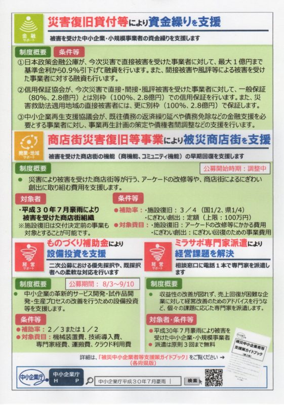 7月豪雨により被災された中小企業の皆様への事業継続・再開に向けた支援策のご案内