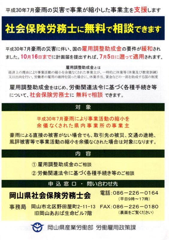 7月豪雨災害により事業縮小を余儀なくされた事業主様(社労士に無料で相談できます)