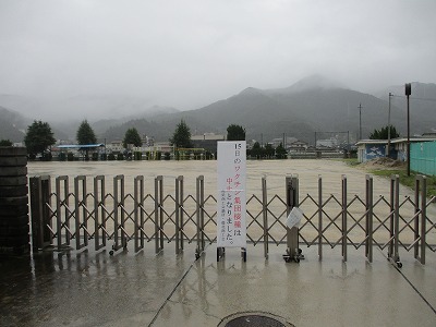 (臨時駐車場「シャトルバス」の高梁小学校グラウンド)
