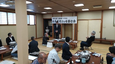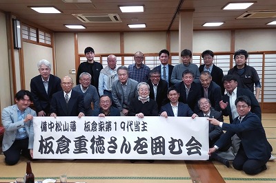 備中松山藩 板倉家19代目当主「板倉重徳さんを囲む会」を、令和5年4月22日(土)午後6時から高梁市内のまちづくり団体有志で開催しました。当日は約20人が出席、板倉重徳さん、近藤高梁市長に挨拶をいただいた後、山田方谷記念館山田敦館長の乾杯で懇親会を行い交流を深めました。