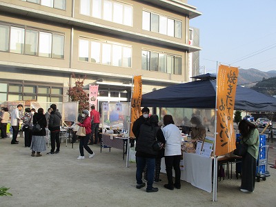第2回目の「高梁朝市」をが令和2年12月12日(土)午前7時から、高梁市・正宗公園で開催いたしました。高梁朝市は、新型コロナウイルスで大きな打撃を受けている地域経済の回復を目指し、コロナ禍で客足の減った飲食店、また生産者などを支え回復のきっかけにしようと高梁市観光物産館「紺屋川」・高梁地域づくり交流会らで組織する実行委員会が令和2年10月に企画・開催し、今回第2回目の開催となりました。朝市には市内、吉備中央町から13店舗・団体が出店、鮎の塩焼きやマツタケ入り汁、野菜、ぶどう、米粉パンなどを販売した他カレーやホットドッグのキッチンカーも並びました。感染防止対策のため、入口での手指の消毒を徹底し、各店舗でも消毒液の設置やビニールシートを張るなどして接しました。当日はあいにくの雨模様となりましたが、来場者が新鮮野菜などお目当ての品を買い求めていました。