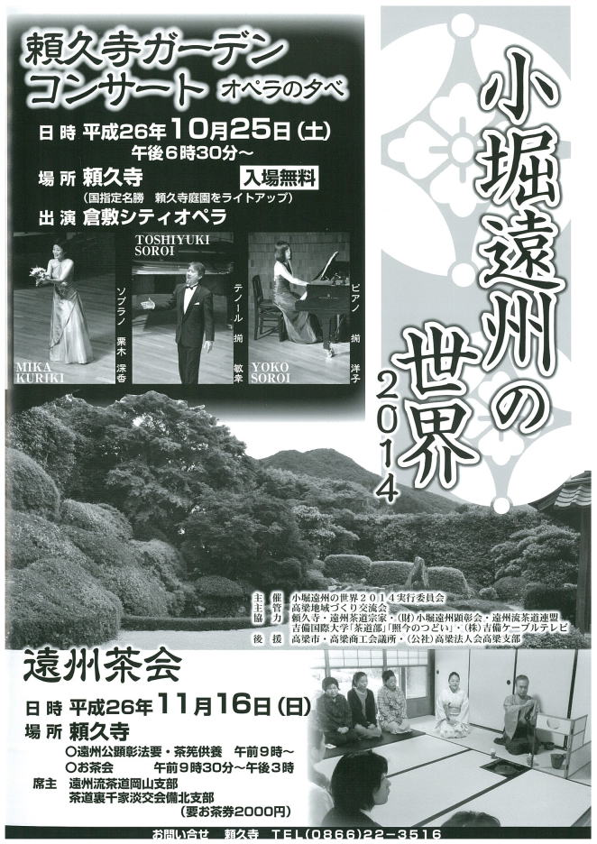 小堀遠州の世界2014「ガーデンコンサート」「遠州茶会」開催のご案内