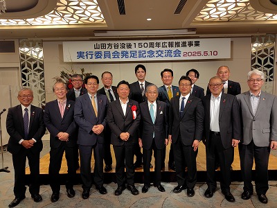 令和8年に郷土の偉人山田方谷の没後150年を迎えることから「山田方谷没後150周年記念講演会」が、5月10日㈯に山陽新聞社さん太ホール(岡山市)で開催されました。講演会では、同実行委員会松田久会長((一社)岡山県商工会議所連合会会長)の挨拶の後、〇松田久氏(同実行委員会会長・両備HD副会長)が「両備HDの経営と山田方谷の思想」について、〇方谷直系子孫の野島透氏が「方谷思想で会社の成長、地域の活性化」について、〇就実大学名誉教授杉山慎策氏が「山田方谷の経営改革と現代の経営学」についてそれぞれのテーマで講演された後、3人による鼎談が行われました。また交流会がANAクラウンプラザホテルで開催され、高梁地域づくり交流会からも講演会・交流会に参加いたしました。