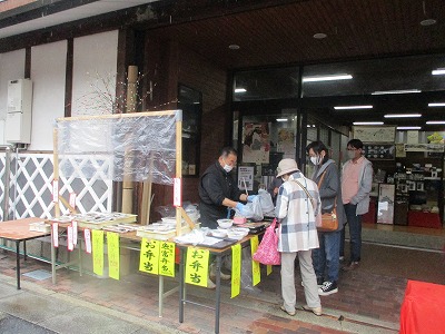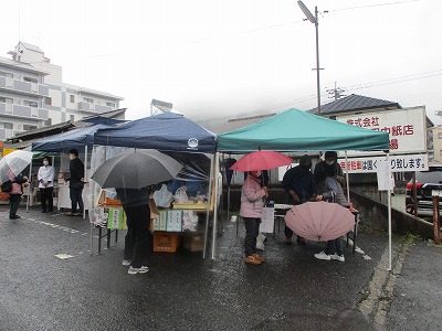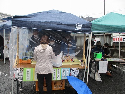第3回目となる「高梁朝市」(高梁市観光物産館紺屋川・同実行委員会・主催)を令和3年3月28日(日)午前8時から、高梁市観光物産館紺屋川で開催いたしました。高梁朝市は、新型コロナウイルスで大きな打撃を受けている地域経済の回復を目指し、コロナ禍で客足の減った飲食店、また生産者などを支え回復のきっかけにしようと高梁市観光物産館「紺屋川」・高梁地域づくり交流会らで組織する実行委員会が令和2年に企画・開催し、第3回目の開催となりました。今回の朝市には市内、吉備中央町から10店舗・団体が出店、鮮魚、お餅やかき餅、焼き鳥、米粉パン、地酒、雑貨などを販売した他カレーやラーメンなども販売されました(ロータリークラブも参加)。感染防止対策のため、入口での検温や手指の消毒を行い、各店舗でも消毒液の設置やビニールシートの設置など対策を徹底していました。当日はあいにくの雨模様でしたが、来場者はお目当ての品を買い求めていました。