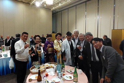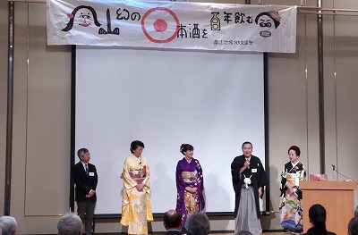 岡山幻の日本酒を百年飲む会は、日本酒はその地域に根ざした文化であるという認識から岡山の地域づくりの中から岡山の地酒を見直し応援して行こうという主旨で集まった、いわば岡山の地酒の応援団です。同会は地元岡山で活躍されている演奏家等によるコンサートと、四季折々の地酒と料理を楽しむ例会を開催してきており、平成5年2月にアークホテル岡山で第1回「岡山幻の日本酒を飲む会」を開催して以来、令和6年11月6日(水)開催の例会で111回を迎えました。第111回の会には約90人が参加、第1部 株式会社明日絵三城誠子社長に「映画【倉敷物語はちまん】カンヌへ行く」と題し(ご出演の俳優さんのパフォーマンスやサプライズも交え)お話をいただきました。続いて、第2部の懇親会を開催、アークホテル料理長プロデュースの日本料理を中心としたお酒の肴と、県内の酒蔵から大吟醸酒など、季節ならではの岡山の地酒を楽しみました。「岡山幻の日本酒を百年飲む会」には当高梁地域づくり交流会も設立から今日まで運営に参画しており、111回の会には高梁から渡辺酵造氏、遠藤氏も参加いたしました。