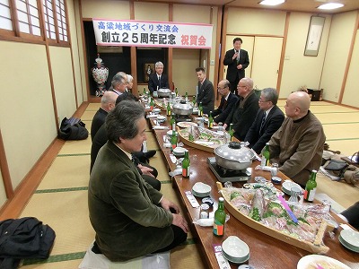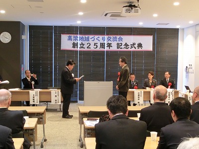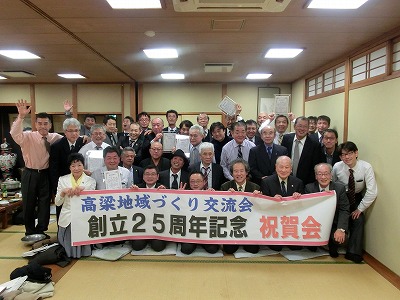 高梁地域づくり交流会「創立25周年記念式典」を平成30年2月17日(土)午後3時から高梁市図書館4Fで開催しました。当日は約50人が出席、西右介会長の挨拶、活動報告の後、高梁市近藤市長様、厚生労働大臣加藤勝信令夫人加藤周子様、岡山県備中県民局地域づくり推進課長佐藤昌之課長様、岡山幻の日本酒を百年飲む会代表世話人長峰襄様の4人に来賓挨拶をいただきました。最後に当会の運営、活動に功労のあった皆様に特別功労賞、感謝状の贈呈を行いました。続いて午後4時から「まちづくり講演会」(高梁商工会議所共催・一般公開)を開催しました。講演会には約70人が出席、長年、高梁のまちづくりにご指導をいただいております、東京大学大学院工学系研究科西村幸夫教授を講師にお招きし「これからの時代のまちづくりに欠かせないもの」をテーマに講演をいただきました。また最後に第3部の交流会を、午後6時から開催いたしました。祝賀会を兼ねた交流会では、西会長の挨拶の後、高知県から駆けつけてくださった塩井政利さんの乾杯で交流会がスタート、参加者の皆様同士和やかに懇談されました。