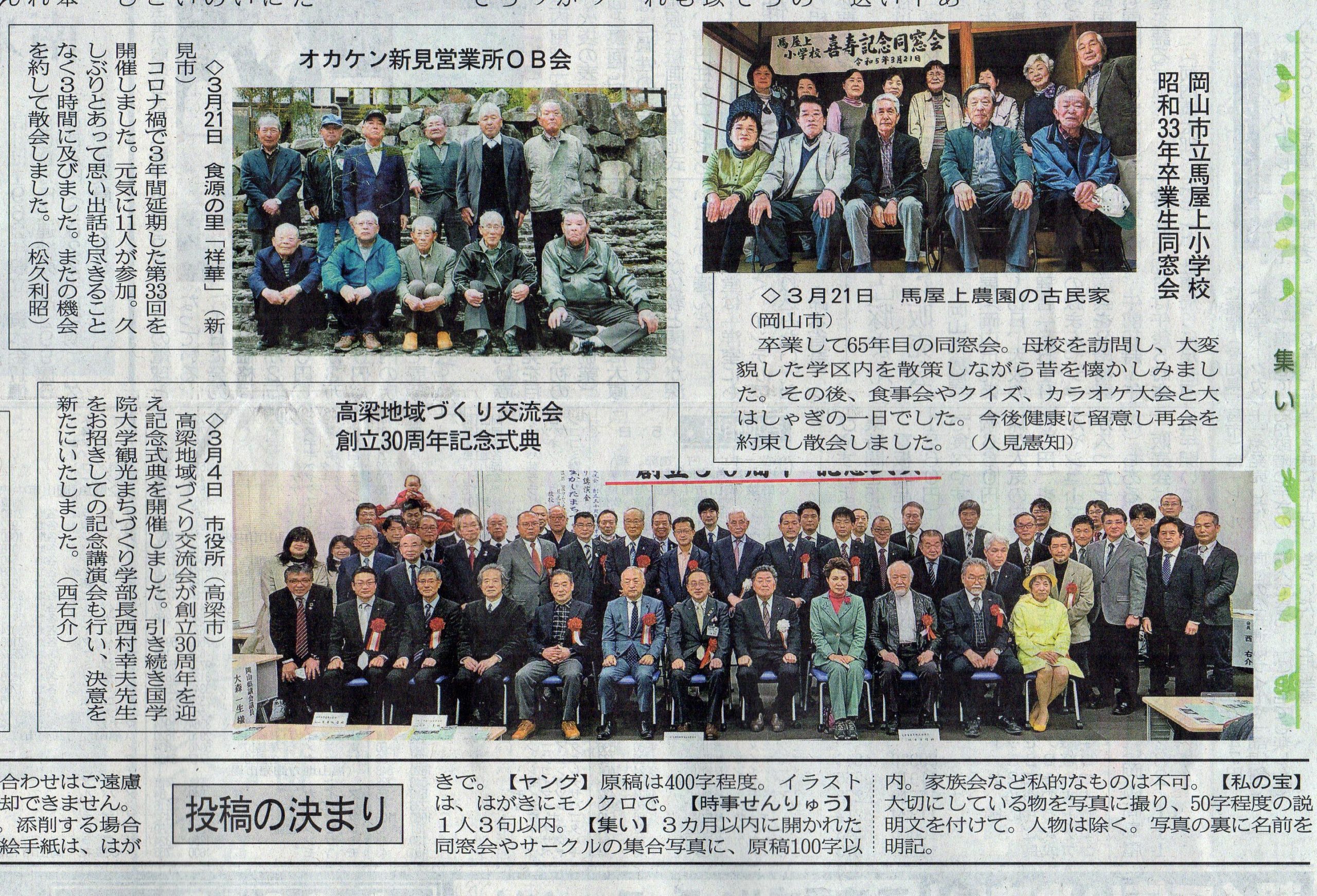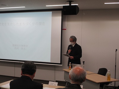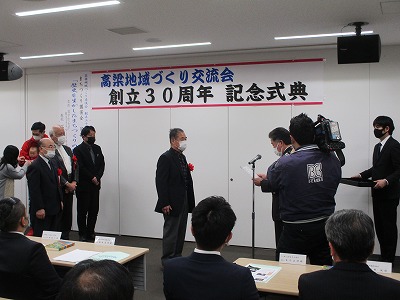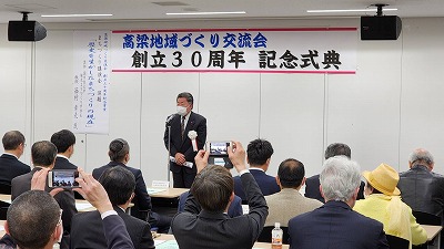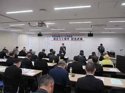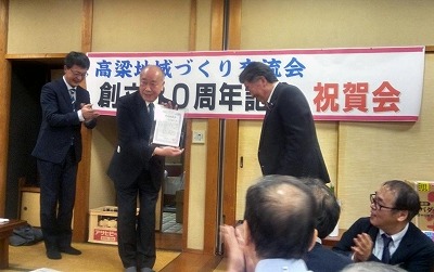 高梁地域づくり交流会では、創立30周年記念式典を令和5年3月5日(日)午後3時から高梁市役所で開催されました。式典には約60人が出席、西 右介会長の挨拶の後、活動報告(DVD)、ご来賓挨拶・紹介の後当地域づくり交流会並びに高梁のまちづくりに貢献された、岡山おもしろ倶楽部代表竹原和夫氏、岡山幻の日本酒を百年飲む会代表世話人日野進一郎氏、遠州流茶道岡山支部小見山豊氏、まちづくり団体PONTE藤村典由氏、本町地区で守内商店を再建され多方面で活躍される横山毅・矢動丸祐子ご夫妻の5人(組)に西会長から感謝状・特別功労賞が贈られました。式典終了後に開催した記念講演会では、講師の國學院大學観光まちづくり学部長西村幸夫先生が「歴史を活かしたまちづくりの現在」をテーマに講演されました。終了後、会場を移動し記念祝賀会を開催いたしました。