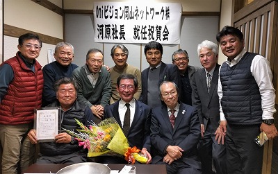 山陽新聞高梁支局元支局長の河原聡さんが、Oniビジョン・岡山ネットワーク㈱の代表取締役に就任されたことから、社長就任祝賀会・河原さんを囲む会を令和5年12月6日(水)午後6時30分から12月第1例会を兼ねて開催いたしました。河原さんとは高梁支局長時代から当地域づくり交流会と交流させていただいており、祝賀会では河原さんから挨拶をいただいた後、当会から感謝状と花束を贈り、河原さんを囲んで懇談をおこないました。河原さんは高梁支局長後も山陽新聞社の要職を歴任されております。同会には藤岡高梁商工会議所会頭や山陽新聞高梁支局小川支局長も出席、河原さんから参加メンバーに多くの話題を提供いただき有意義な時間を過ごさせていただきました。