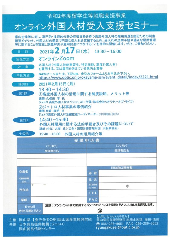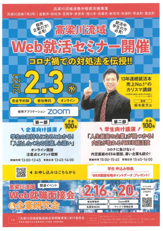 > Web就活セミナー(高梁川流域)&外国人材受け入れ支援セミナー等のご案内