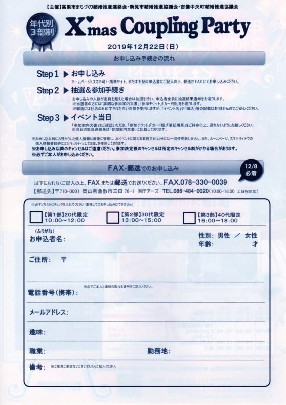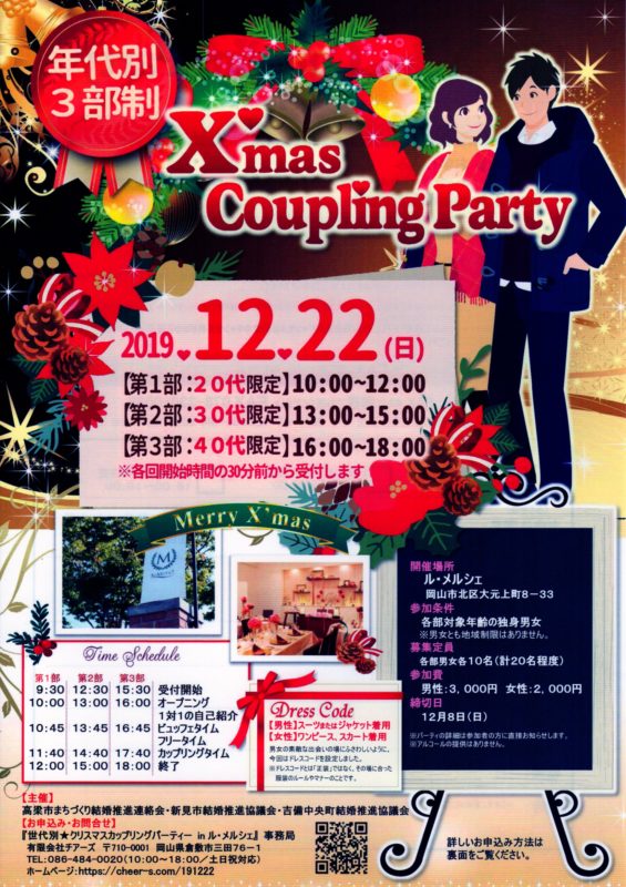 X’mas Coupling party (年代別3部制)の開催ご案内